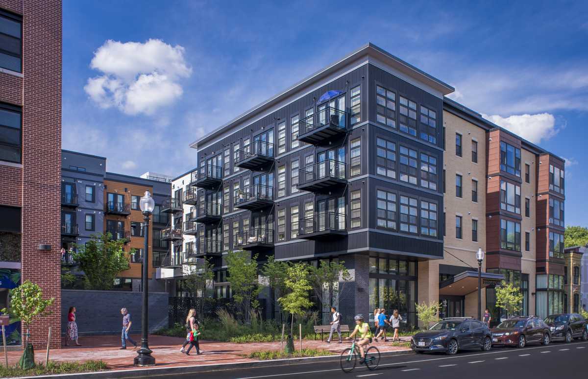 Craftwell Architects worked with developer Foulger-Pratt to create a design that adhered to the aesthetic imperatives of the historic neighborhood while addressing the needs of the community, where few Class A apartments have been developed in recent years. The resulting building is a single structure designed to look like a collection of buildings that includes not only the residential units and upgraded Safeway, but also 8,000 square feet of commercial space for smaller local businesses.