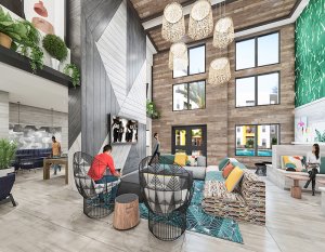 A mixed-use building operating under an “urban refined” concept has an impactful residential experience.