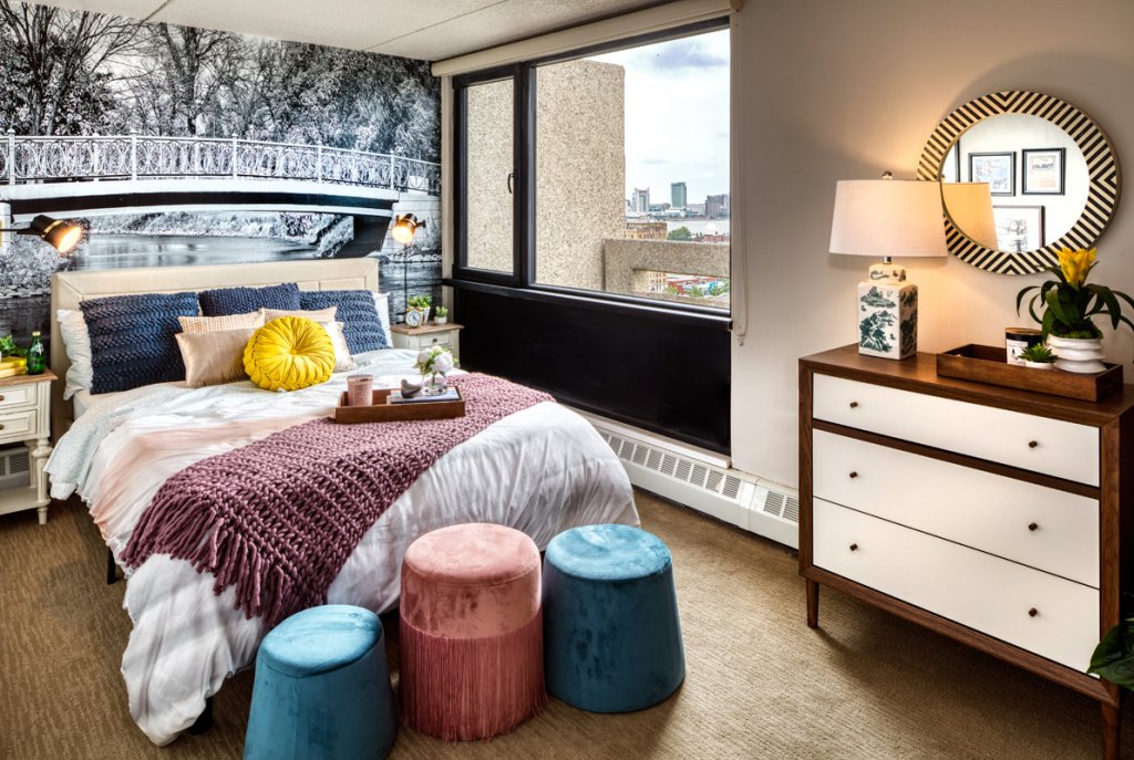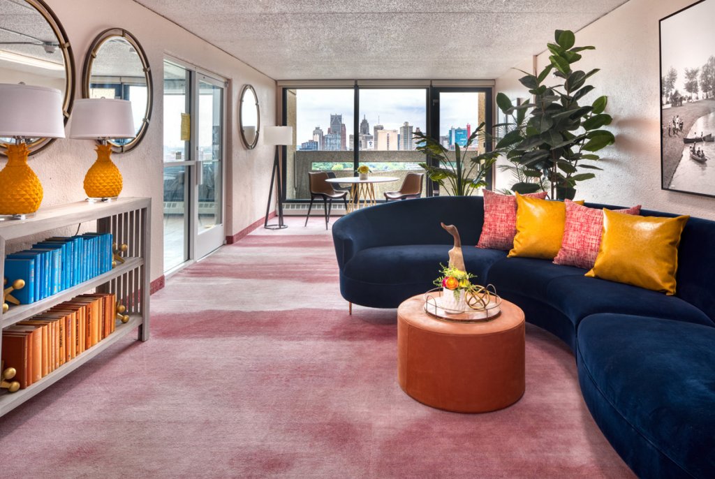 The resulting building features four different unit finish packages, providing the renter with options that appeal to their individual tastes. The outdoor amenity spaces are a huge draw for residents with areas for swimming, lounging, dining, relaxing, meditating, and entertaining all incorporated into the final product. Plus, they get a unique experience with the new exterior façade being a nod to green foliage creating an urban treehouse, and the interior amenity spaces offering art and accessories that tie to the neighborhood and local Detroit history.