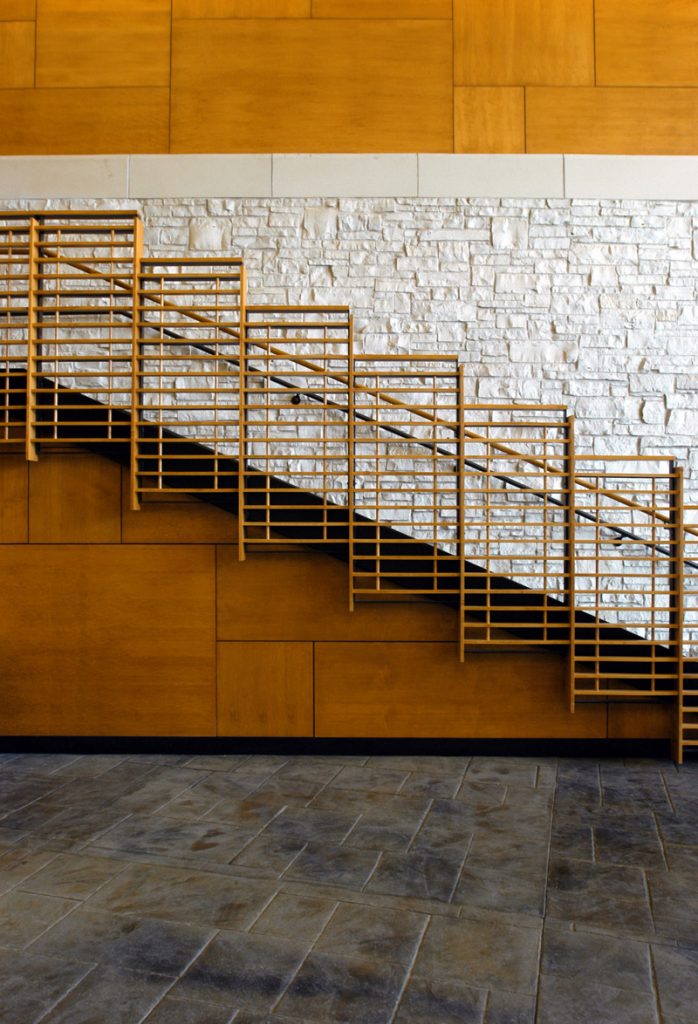 The Edina City Hall and Police Facility, located on a highly visible and particularly challenging triangular site surrounded by mature trees and high-value properties, is grounded with a stone plaza linking the site, parking, exterior plazas, and lobby with the neighboring community. The two-story building supports the city operations and public services, including council chambers, public conference rooms and the police department with secured underground parking. On such a visible site, it facilitates open communication to connect its multiple functions.
