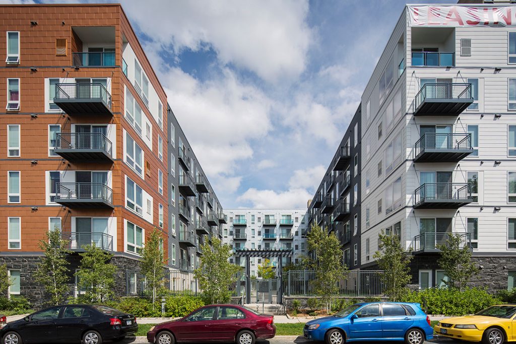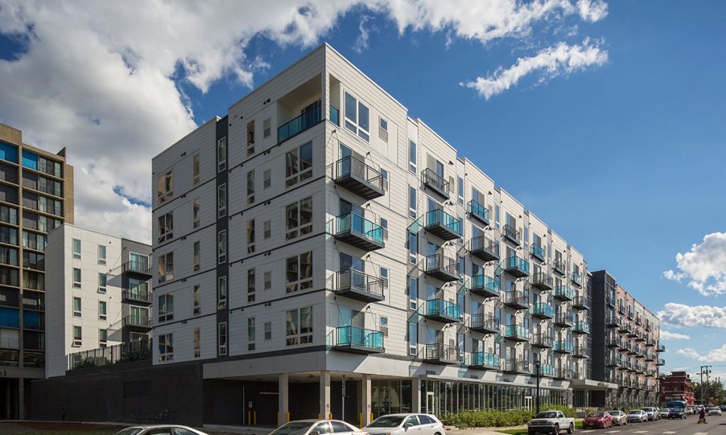 Ground and courtyard facing units have street-level entrances providing a neighborhood scale. There is 5,000 square feet of ground-floor commercial space available to community-based tenants. Five15 offers the neighborhood affordable, workforce and market-rate housing offerings with great amenities. The 259 dwelling units include town homes, studios and one-, two- and three-bedroom apartments with underground parking. Residents of the six-story building have access to a variety of luxury amenities including a business center, fitness rooms, meeting rooms, gathering areas, community room with full kitchen, secured bicycle storage, and personal storage rooms, and outdoor courtyards.