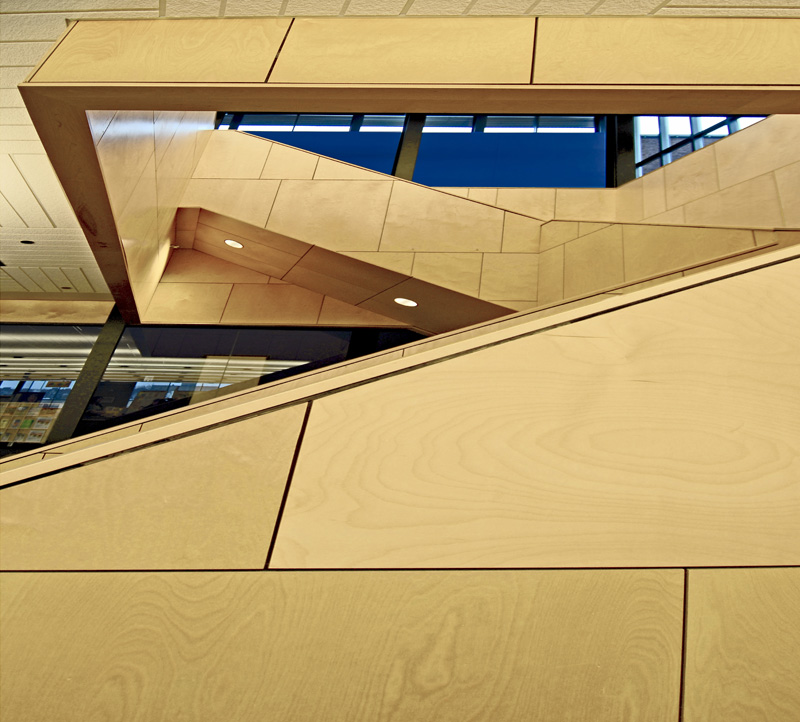 As a major civic presence on the edge of the Commercial Historic District Boundaries, the new library responds to the Shakopee Downtown Design Guidelines through the use of traditional materials and architectural design elements, interpreted for the contemporary functions and needs of a modern library to ensure long-term value. The building’s siting, massing and relationship to the surrounding community establish it as a downtown marker and destination, visible and identifiable for both pedestrian and automobile-oriented users.