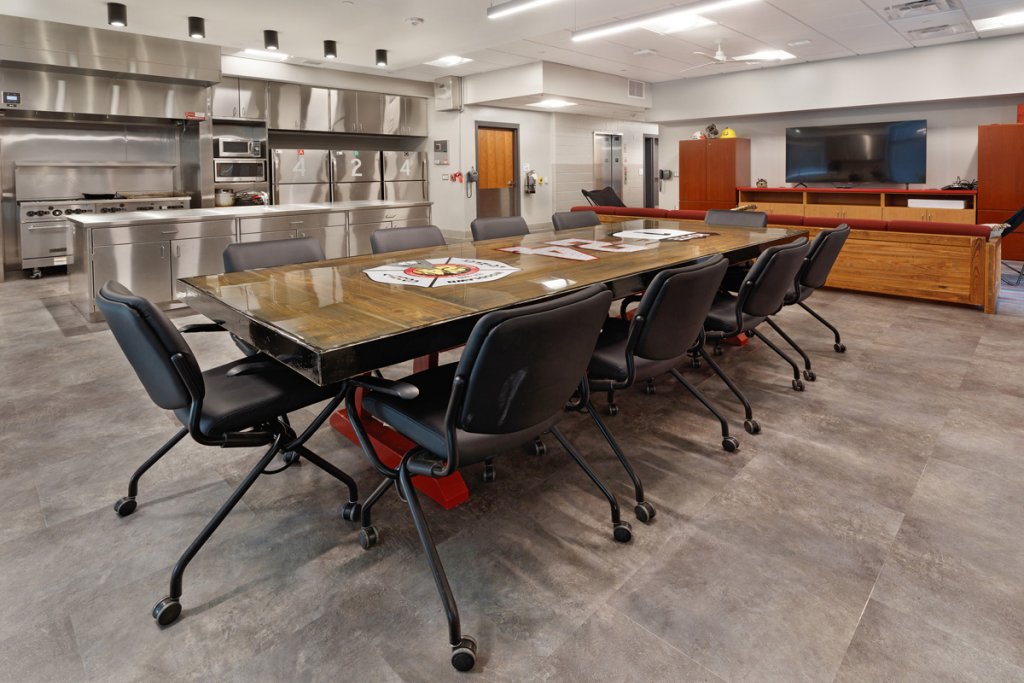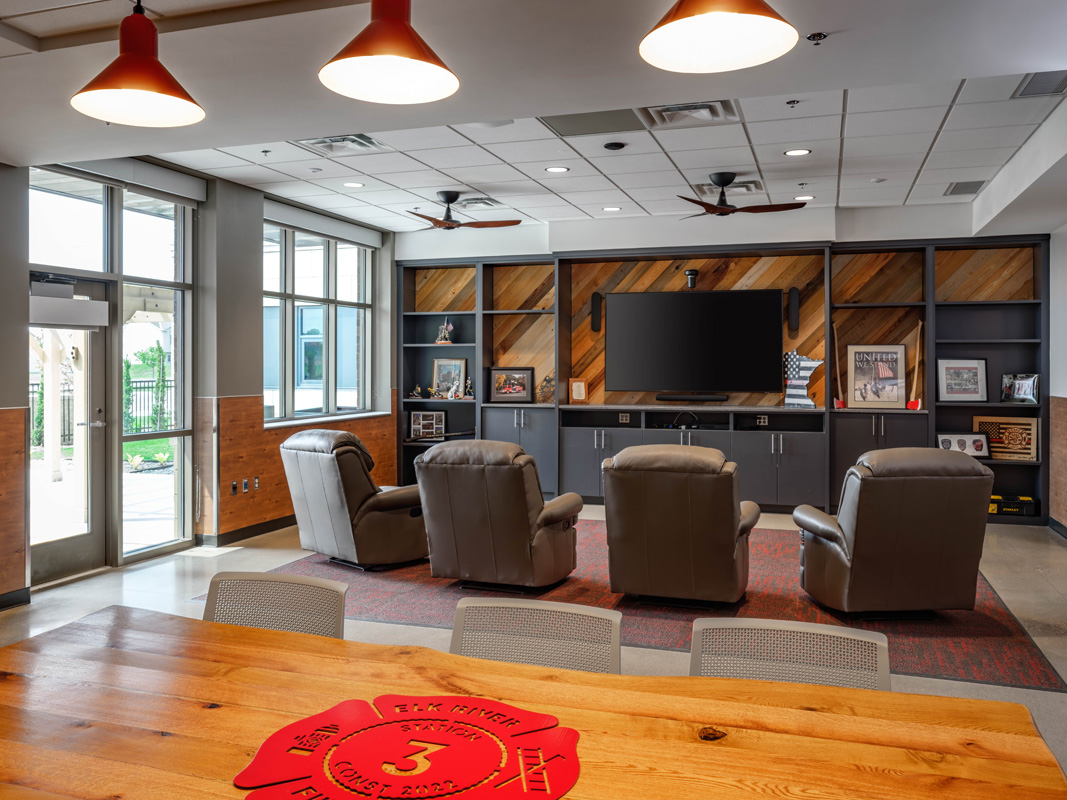In the fire service, resiliency is more than a buzzword – it’s mission critical. At Craftwell Architects, we understand the nature of resiliency, and it informs our design decisions throughout the project. We use diverse solutions to help our clients be prepared for a range of vulnerabilities. The best way to protect firefighters from the hazards of diesel exhaust is to install tailpipe capture devices as well as general garage exhaust fans, each of which is superior under certain conditions but neither of which is ideal for all conditions. We recommend apparatus doors at front and back for ease of driving but also in case something fails, and we extend this redundant mindset to all aspects of the building – HVAC, electricity, plumbing fixtures, alerting, etc. We design for durability, not only to withstand hard use by the firefighters but to protect the firefighters and equipment through intense storms. With low-maintenance and long-lasting materials and a careful approach to long-term energy use, the building can operate at a high level for 50 years or more. We design with multi-functional rooms, with pathways to gracefully integrate future technology, and with renovation and expansion in mind, because we believe that a fire station should be able to adapt to the changing world.