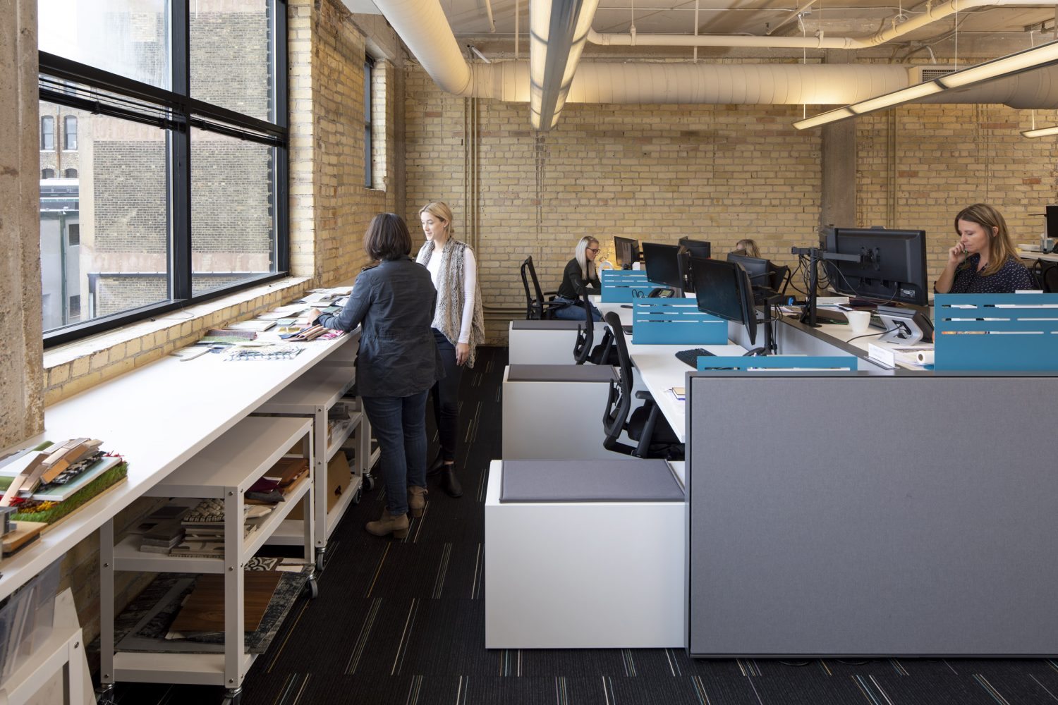 By directly borrowing from the workplace strategies we advise our clients with, the Minneapolis office of Craftwell Architects created an office environment centered on productivity, and designed our workspace to help improve work flow, while increasing workplace wellbeing.
